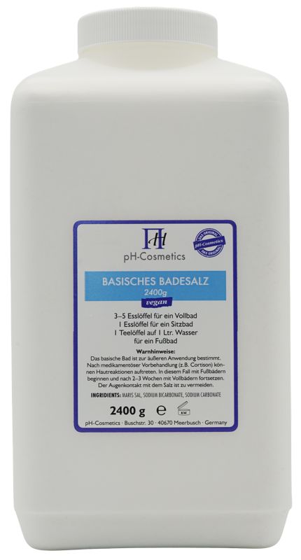 Die optimale Badetemperatur liegt bei 37°C oder ein wenig höher. Das Bad wird je nach Kalkgehalt des Wassers mit 4-5 EL Badesalz zubereitet. Zum Badebeginn sollte das basische Badewasser etwa einen pH-Wert von 8,0 aufweisen. Mit einem Lacmuspapier können sie selbst den pH-Wert des Badewassers nachprüfen. Die Badezeit sollte mindestens 1 Std. betragen. Auch längere Badezeiten sind empfehlenswert. Bei Bedarf sollte heisses Wasser nachgefüllt werden um Auskühlen zu vermeiden. Mit einem Buch, Musik oder Meditation lässt sich die Zeit gut geniessen. Nach ca. 30 Minuten sollte mit einer Bürste die Haut wiederholt abgerieben werden, um die alten Hornhautschichten zu entfernen und um die Haut zu öffnen. Nach dem basischen Bad nicht abduschen. Die Haut nur leicht abtrocknen. Mit einem weiteren pH-Teststreifen können sie nun den pH-Wert des verbrauchten Badewassers testen. Der Teststreifen wird bei empfohlener Badedauer einen tieferen pH-Wert anzeigen als vor dem Baden. Die Haut hat nun überschüssige Säuren in das Badewasser abgegeben und beginnt sofort mit der Rückfettung, was an den von der Haut abperlenden Wassertropfen nach einer einstündigen Badezeit deutlich sichtbar wird. Der Erholungseffekt wird durch eine halbstündige liegende Ruhepause noch nachhaltiger gesteigert.